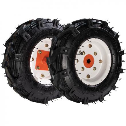 Sada gumených nafukovacích kolies spolu s poloosami.