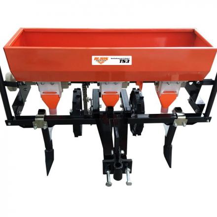3-radový sejací stroj TS3 je možné pripojiť ku všetkým kultivátorom a malotraktorom RURIS. Tento produkt je ideálnou voľbou na siatie malých a stredných pozemkov, pretože je vhodný pre trávne porasty aj zeleninové plodiny. Vzdialenosť medzi radmi je 35 cm. Ak chcete, aby boli riadky pestované vo väčšej vzdialenosti, môžete stredný riadok odstrániť, čím sa vzdialenosť zväčší na 70 cm. Hnacie kolesá sú poháňané pomocou reťaze na blokoch na rozdeľovanie osiva, ktoré nechá osivo padať do brázdy pripravenej radličkou. Hĺbka sejby sa nastavuje z radličky. Požadovanú vzdialenosť medzi riadkami je možné nakresliť fixkou. Výberové pole pre požadovanú vzdialenosť medzi rastlinami sa vytvorí z bloku distribúcie semien. Produkt má vaňu na vkladanie semien s možnosťou výberu zatvorením alebo otvorením dvoch chlopní, takže si môžete vybrať modul zodpovedajúci semienkam, ktoré chcete zasiať.
